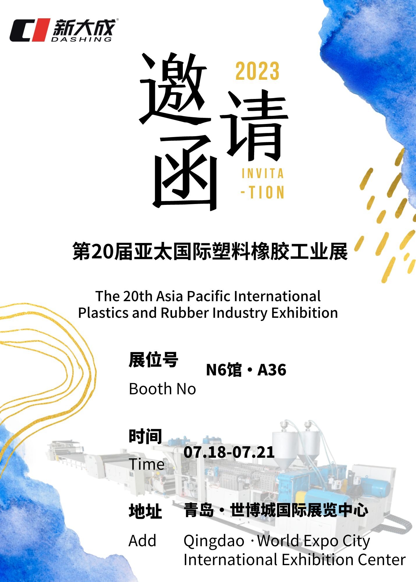 The 20th Asia Pacific International Plastic and Rubber Industry Exhibition is approaching its opening in 2023, and Qingdao Xindacheng Plastic Machinery Co., Ltd. will present exciting moments together with over 2000 exhibitors.