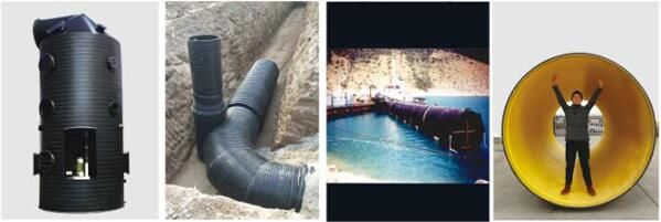 The unit is commonly known as krah pipe in China, and it takes high-density polyethylene (HDPE) resins as main material by hot winding molding process. It is winding structural wall pipe B with strong anti-pressure capability, and supported by polypropylene (PP) single wall corrugation pipe. The pipe has smooth surfaces inside and circular reinforced structure outside, and it also has high circular rigidity, strong impact resistance and melting sealing joint. It belongs to flexible pipe.