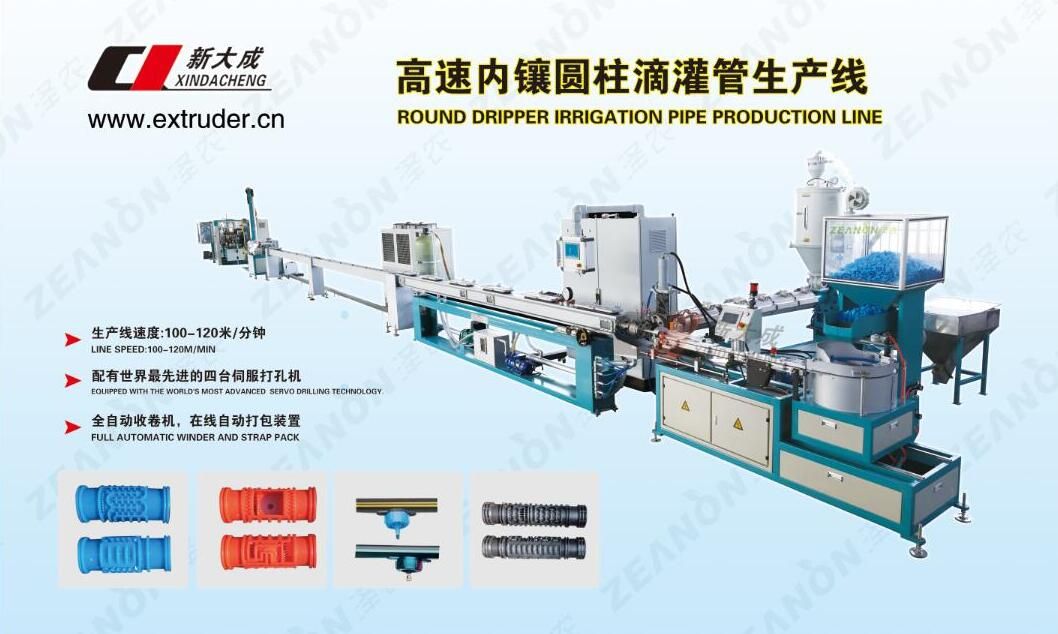 High-speed flat drip irrigation pipe production line, high speed round drip irrigation pipe production line, strap production line, Krah-pipe production line, Large caliber PE pipe production line, corrugated pipe production line.
